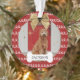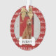 Amusant et festif ornement photo d'animal de compagnie. Notre conception comprend un fonds blanc et rouge motif arrière - plan tourbillon. **Remarque La couleur arrière - plan peut être changée en n'importe quelle couleur ** Personnaliser avec la photo de votre animal et le nom placé sur l'os blanc fait. Un Beau faux arc doré est ajouté au sommet de l'ornement.