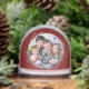 This simple Deep Red Snow Globe has a gold circle with small green leaves and red berries for holding your Christmas photo. There is space to include a date and on the back is a larger sprig of Christmas greenery. These photo snow globes are a great holiday gift for grandparents and other family members. Given yearly they build a history of your family that they can enjoy year by year.