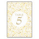 GOLD CONFETTI MARIAGE CARTE NUMÉRO DE TABLE. Beau texte faux or sur un délicat arrière - plan de confetti en or. Conçu par Pure Piglet© à l'adresse www.zazzle.com/purepiglet*.