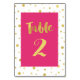 Cartes de numéro de table glamour et chic en rose fuchsia et blanc brillant avec confettis d'or et texte de style lettré à la main. Customisez ces cartes avec vos numéros de table pour un ajout spécial à vos tables mariages. Convient également pour les anniversaires et fêtes d'anniversaire.