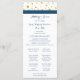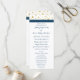 Programme de mariage personnalisé en bleu marine foncé et blanc avec confettis d'or et texte de style manuscrit. Customisez ces cartes de cérémonie avec votre propre texte.