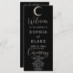 Présentant notre programme de mariage noir impressionnant imprégné d'une essence céleste captivante, une lune resplendissante de croissant d'or domine le centre supérieur, dégageant un charme enchanteur. Adapté aux mariages célestes, lune, mystiques ou nocturnes, ce programme ajoute une touche d'élégance céleste à votre journée spéciale. Le devant de ce programme noir élégant présente élégamment les noms des couples, la date mariage significative, les détails du lieu et des informations complètes sur la cérémonie. Dans un cadre noir raffiné, ces détails cruciaux sont présentés dans une police de caractères claire et lisible, assurant une lisibilité et une sophistication aisées. Ajoutant une touche de grâce et de raffinement, les mots "Welcome", "Ceremony" et "Wedding Party" sont délicatement crées dans une police ornée de caractères décoratifs, ce qui donne un charme visuel exquis. Au contraire, la fête de mariage est classée avec goût, complétée par la lune captivante au croissant d'or, dressée contre l'élégante toile noire. Ce thème céleste ajoute une aura de mystique, ce qui en fait un choix idéal pour les couples à la recherche de thèmes mariages célestes, lunaires ou mystiques. Ce programme de mariage noir, orné d'une lune céleste de croissant d'or, est conçu pour les couples aspirant à insuffler à leur mariage des éléments célestes, lune ou mystiques. Son design sophistiqué et son charme céleste en font un choix parfait pour ceux qui cherchent à créer une ambiance enchanteresse lors de leur journée spéciale.