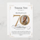 Gold Custom Photo 70e Carte de remerciements anniversaire. Un carte de remerciements spécial de célébration d'anniversaire, élégamment conçu, avec une photo personnalisée de personne d'anniversaire et de calligraphie script avec des éléments florissants vintages. Assez simple pour s'adapter à une variété de thèmes et de couleurs ! Besoin d'aide avec le modèle ? Contactez-moi !