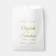 Ces sacs de faveur mignons sont parfaits pour donner aux membres de votre mariage ou à tout invité spécial. Remplir de bonbons ou de tout autre cadeau spécial. Conçus dans le cadre de notre Suite de Mariage Elégante Gold Foil, ils présentent un design simple mais élégant avec du texte en or sur un arrière - plan blanc avec une bordure florale en faux feuille d'or.