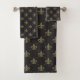 Ensemble royal luxueux de serviette de motif de Fleur de Lis de noir et de couleur d'or.