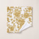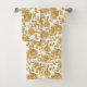 Serviette de bain trois pièces en or et blanc. Le motif floral classique et intemporel sera toujours dans le style. La décoration de bain bon marché.