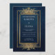 Faites une déclaration élégante avec ce Faire-part de mariage Gold Floral Frame Navy, avec une crête florale ornée d'or inspirée de la feuille d'or en haut et en bas, joliment encadrée à l'intérieur de bordures métalliques stratifiées. L'arrière - plan bleu marine, à la texture délicate et rose, ajoute profondeur et luxe, parfait pour des événements officiels en mariage, en cravate noire ou des rencontres haut de gamme. Bien qu'elle soit conçue avec l'esprit des mariages, cette invitation peut être facilement customisée pour des fêtes de fiançailles, des célébrations d'anniversaire, des renouvellements de voeux, des douches nuptiales ou même des dîners de luxe. L'aménagement offre un espace généreux pour une formulation personnalisée tandis que les accents décoratifs apportent un style raffiné à toute occasion. Cette invitation est idéale pour les mariages d'automne ou d'hiver, les soirées, ou toute personne à la recherche d'une riche palette de couleurs.