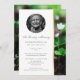 Elégant service mémorial d'or invitations inspirées par les fleurs de la forêt sauvage. Customisez avec une photo de votre proche et personnalisez facilement les détails funéraires.