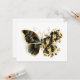 Or flower butterfly with black jewelry orchid, decorated with gold leaves on white background.