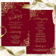 Ces programmes de mariage sont élégants et de bon goût, tout en étant toujours à l'aise avec le budget. Le design est orné d'un foutre doré orné d'un texte doré sur un arrière - plan bordeaux, marron ou rouge vif. La typographie présente une calligraphie de script dentée, et il y a de la place pour des détails sur la cérémonie, la fête de la mariée, et un bref merci.