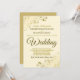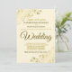 Cette invitation de mariage simple mais élégante présente des lettres en or sur un arrière - plan crème. Le design est sobre, mais les coins sont ornés d'un faux fil floral doré orné de boucles et de frites. Le texte est formel et traditionnel mais le design chic rend cette invitation appropriée pour tout mariage.