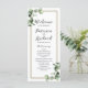 Une carte de service mariage à l'eucalyptus verdoyante. Facile à personnaliser avec vos détails. Idéal pour la douche nuptiale à thème verdoyante ou jardin. Contactez-moi par conversation si vous avez des questions sur l'oeuvre ou avez besoin d'une personnalisation.