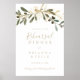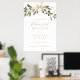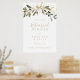 Ce panneau d'accueil pour le dîner d'automne de verdure dorée est parfait pour une répétition mariage moderne. Le design présente un charmant feuillage artistique vert et or.
