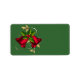 Des étiquettes de adresse verts ou des étiquettes de marque-cadeau avec des tourbillons sacrés en or et des cloches rouges vifs.