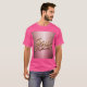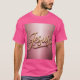 This t-shirt features Jesus in elegant cursive script in metallic gold with a glossy, three-dimensional effect. The background transitions from a lighter rose gold at the top to a darker rose gold pink at the bottom, creating a gentle gradient effect. The t-shirt is a unisex men's t-shirt. The shirt is made of 100% cotton.