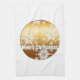 Serviette de cuisine personnalisable avec lettrage blanc "Joyeux Noël" comme des lettres découpées (non personnalisables) sur arrière - plan doré avec des flocons de neige en cercle. Vous pouvez facilement ajouter et modifier votre texte (couleur, police, taille et position) en cliquant sur le bouton Personnaliser ou customiser. N'oubliez pas toute la collection.