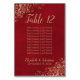 Ces belles cartes numériques de table présentent un design simple mais élégant avec calligraphie en écriture or sur un arrière - plan rouge cramoisi marbré avec une fausse feuille d'or frilly filigree floral dans les coins. Chaque carte peut contenir les noms de 10 invités, ils fonctionnent donc comme un tableau de sièges, ce qui permet aux gens de trouver facilement leurs tables à la réception de votre mariage.