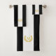 Elégant or comme le laurier et le monogramme d'or sur le kit de serviettes de bain rayé noir et blanc.