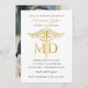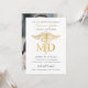 Faux or MD et le symbole médical caducée. Travaille à la fois comme une invitation à une fête de remise de diplômes ou comme une faire-part de remise de diplômes. Photo sur le dos est facultative