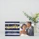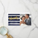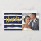 Ce carte de remerciements de glamour présente une feuille d'or imitation, une calligraphie manuscrite, des bandes d'aquarelle bleu marine peintes et un modèle photo carré.