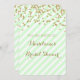 Invitations de douche nuptiale personnalisées avec motif confetti d'or, rayures vert et blanc de menthe pastel clair, et lettrage de style manuscrit. Personnalisable avec votre texte.