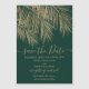 Palmier doré moderne élégant enregistrer la date. Moderne simple faux palmier doré avec typographie simple, une tendance et tropicale enregistrer le thème mariage date sur feuille de palmier avec éditable vert foncé.