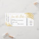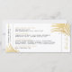Design moderne, élégant et simple faux feuille d'or feuille de palme sur un mariage branché et amusant de destination de plage tropicale enregistrer la carte de date qui ressemble à un billet d'avion carte d'embarquement. Chaque partie de notre modèle de billet d'avion chic est modifiable afin que vous puissiez en créer une qui convienne à vos couleurs et à votre thème mariage. Il y a de la place pour ajouter des détails de voyage sur le dos, ou supprimer la conception sur le dos si les détails ne sont pas encore prêts, vous pouvez ajouter une photo ou votre propre monogramme de mariage en utilisant le concepteur avancé, juste cliquez sur 'customiser plus loin.'