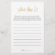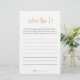 Ce jeu de douche nuptiale "Who am I" sera aimé par la plupart des épouses-to-be. Le design romantique est orné de lettrages dorés et d'un arrière - plan en marbre rosegold au dos du prospectus. Vous pouvez personnaliser le dos de la carte avec le nom de la future mariée et la date de la mariée ou du wedding shower. Ajoutez votre libellé personnalisé à cette conception à l'aide des zones "Modifier ce modèle de conception" situées à droite de l'élément, ou cliquez sur le bouton "Customiser" pour arranger le texte, modifier les polices, la couleur de police et la couleur arrière - plan.