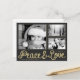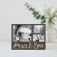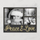 Customisez cette belle carte postale moderne moderne horizontale de saison de vacances conçue avec faux texte or Paix et Amour sur gris foncé / noir. Veuillez noter que l'or est imprimé couleur et n'est pas une feuille d'or réelle. Remplacez les trois images modèles par vos 3 photos préférées et changez toutes les informations modèles des deux côtés par les vôtres. Ce design a un libellé : "Vous souhaite une joyeuse saison des fêtes et une nouvelle année remplie de paix et d'amour." mais vous pouvez changer les mots avec votre propre. *Crédits Modèles photo : Photo 1 : © Alexandre Normand; photo 2 : © Widerbergs; photo 3 : © Official U.S. Navy Imagery.