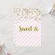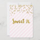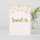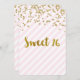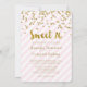 Personnalisé 16ème anniversaire invitations à la fête en rose clair pastel et rayures blanches motif avec confetti d'or et texte de style lettré à la main. Ajoutez votre nom et les détails de votre fête pour une invitation unique et élégante à la fête de 16 ans.