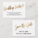 Gardez vos invités mariages dans la boucle avec tous vos détails avec ces cartes d'encarts mariages modernes à deux pour un. Les superpositions de texte de typographie décontractée ont été conçues à l'aide d'une police manuscrite moderne ornée d'or immétallique. L'en-tête d'un côté indique "Site Web Mariage" et l'autre, "Enregistrer la date". Utilisez les champs modèles pour customiser ces cartes de boîtier avec vos informations personnelles. L'arrière - plan est modifiable en blanc ; changez-le en couleur que vous voulez ! Beaucoup d'autres pièces de coordination sont disponibles avec ce style. // 105//