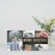 Customisez cette carte photo de Noël moderne et design, simple et horizontale, conçue avec un texte en faux or Joyeux Noël en noir et un collage de cinq photos. Veuillez noter que l'or est imprimé couleur et n'est pas une feuille d'or réelle. Remplacez les images modèles par vos photos préférées et modifiez toutes les informations du modèle. Pour de meilleurs résultats, utilisez des images haute résolution. Crédit Modèle photo : Photographie © Storytree Studios, Stanford, CA
