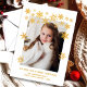 Célébrez la saison avec cette belle carte photo de Noël personnalisée, avec de délicats flocons d'or sur un arrière - plan blanc immaculé. Parfait pour encadrer votre photo de famille préférée, cette carte est entièrement personnalisable avec votre nom de famille et message de vacances chaleureux. Partagez la joie de Noël avec vos amis et votre famille dans le style avec ce design élégant et intemporel.