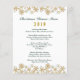 Modèle du menu du dîner de Noël imprimé sur papier de prospectus abordable. Bordure supérieure et inférieure de flocons d'or avec texte vert turquoise, modèle. Créez un titre, ajoutez l'année, et listez les beaux choix de menu pour un festin spécial le jour de Noël ou la veille de Noël. OU achetez ce design imprimé sur papier de qualité avec des mises à niveau optionnelles (voir ci-dessous).