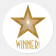 Gold Star 'WINNER!' autocollant rond blanc