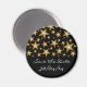 Design moderne avec "brillant" or et étoiles blanches sur un arrière - plan noir. Aimant frigo avec un design personnalisable en or et blanc pour vous permettre de personnaliser avec votre propre couleur arrière - plan, texte, images et idées. Veuillez noter qu'il s'agit d'une image imprimée créée à l'aide de photographies originales et de techniques numériques, elle ne brille pas ou ne contient pas de vrais étincelles. Pour modifier la couleur de l'arrière - plan : Cliquez sur le bouton "Customiser". Allez dans la zone "Customiser" à droite et cliquez sur "Modifier". Cliquez sur "Arrière - plan" dans le menu déroulant, cela ouvre le tableau des couleurs et vous pouvez cliquer sur votre choix de couleur.