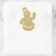Un bonhomme de neige doré souriant et agitant et habillé à la haie dans son chapeau supérieur. Un autocollant mignon pour la saison hivernale. Personnalisez si vous le souhaitez.