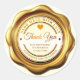 Add a touch of luxury and professionalism to your product packaging with this elegant, customizable gold wax seal Thank You sticker. This round, high-quality label is designed to look like a glossy, traditional wax seal in rich, dimensional gold.