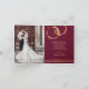 Carte mariage de notes Merci avec votre propre photo mariage encadrée par un design à thème de vin avec des anneaux or et rose en tache de vin et scintille sur un arrière - plan bordeaux et marsala. Il y a aussi de l'espace à l'intérieur pour ajouter des photos.