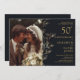 Cette élégante invitation à l'anniversaire du 50ème anniversaire de la floraison noire et or peut être personnalisée avec vos informations dans la typographie dorée moderne et votre photo mariage spéciale. Conçu par Thisisnotme©