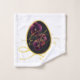 Add a touch of elegance to your home with this luxurious wash cloth featuring a sophisticated Easter egg design. A delicate purple iris is framed by a shimmering golden outline and elegant "Easter" typography, all set against a striking black background. This soft and absorbent cloth combines practical use with fine art aesthetic, making it a perfect seasonal accent for your bathroom or a thoughtful gift for a spring celebration. The high-contrast gold and black palette ensures a modern and premium look for any interior.
