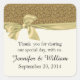 Élégant stickers de faveur de mariage crème, avec des graphismes d'un ton or orné motif tourbillonnant, sur le dessus, avec un ruban et arc en forme de satin d'or clair, en dessous. Personnalisez le texte noir pour votre journée spéciale. Parfait pour vos faveurs de mariage. Produits correspondants disponibles.