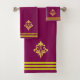 Golden fleur de Lis and three stripes on maroon. Elegant modern towel set. Image only on one side.