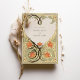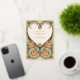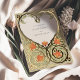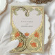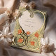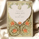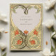 Ce Faire-part de mariage Art Nouveau Coeur d'Or est un hommage romantique à l'amour, mêlant habilement crème, vert sauge et orange chaleureux aux accents de papier doré. L'avant de l'invitation présente un design complexe en forme de coeur, composé de motifs floraux et feuilles élégamment stylisés, qui encadre tendrement les noms du couple. Le design est bordé d'une gracieuse feuille d'or qui ajoute une touche de luxe. Sur le dos, le motif du coeur se poursuit, enfermant les détails du mariage dans une étreinte aimante. Ce design saisit l'essence de l'Art Nouveau avec ses lignes fluides et ses formes naturelles, ce qui en fait un faire-part idéal pour les couples qui souhaitent une touche d'élégance vintage lors de leur journée spéciale.