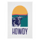 Golden Hour Longhorn - "HOWDY" - sérigraphie contrastant avec le vert turquoise, rose chaud, orange et jaune doré.