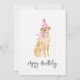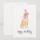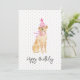 Aquarelle Golden Labrador Chien Art en Casquette d'anniversaire, Ruban en rose sur blanc, mini-ballons en arrière - plan avec personnalisation HEUREUX ANNIVERSAIRE en gris. Facile à personnaliser le texte, la couleur du texte. Idéal pour n'importe quelle célébration d'anniversaire, Amoureux des chiens, Golden Lab, Anniversaire des animaux, Fête du chien / Papa. Festif, Doux, Amusant. Mélangez et appariez des enveloppes de cadeaux / collections d'Amoureux de les chiens par TMCdesigns.