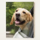 Dimanche conduire à travers le pays, sur la route de terre couverte d'arbres avec récupérateur de labrador. Dog a la tête par la fenêtre et semble heureux d'aller pour la course et semble sourire.