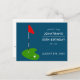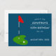 Une illustration simple d'un drapeau rouge de golf, une balle verte et une balle de golf sur un arrière - plan bleu foncé présente sur cette Invitation de fête du 50e anniversaire. Utilisez cette carte postale pour célébrer le 50e anniversaire de votre ami, de votre mari, de votre collègue de travail, de votre partenaire, etc. avec une partie de golf suivie de boissons festives et de dîner. Nous avons ajouté un motif sur le thème du golf avec des chariots, des clubs, des balles et des drapeaux au dos de la carte et changé la couleur arrière - plan. Vous pouvez customiser au contenu de votre coeur; même cacher le motif et ajouter une photo si vous le préférez.