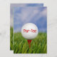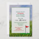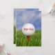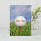 Boule de golf blanc sur tee rouge en herbe verte pour la fête d'anniversaire Tout le texte est modifiable.