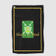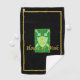 Drôle serviette de sport avec un design de crête de style médiéval pour les joueurs de pickleball, a croisé des épées sur le bouclier avec un terrain de pickleball, et "House of Dink" texte en or et bordure sur l'arrière - plan noir